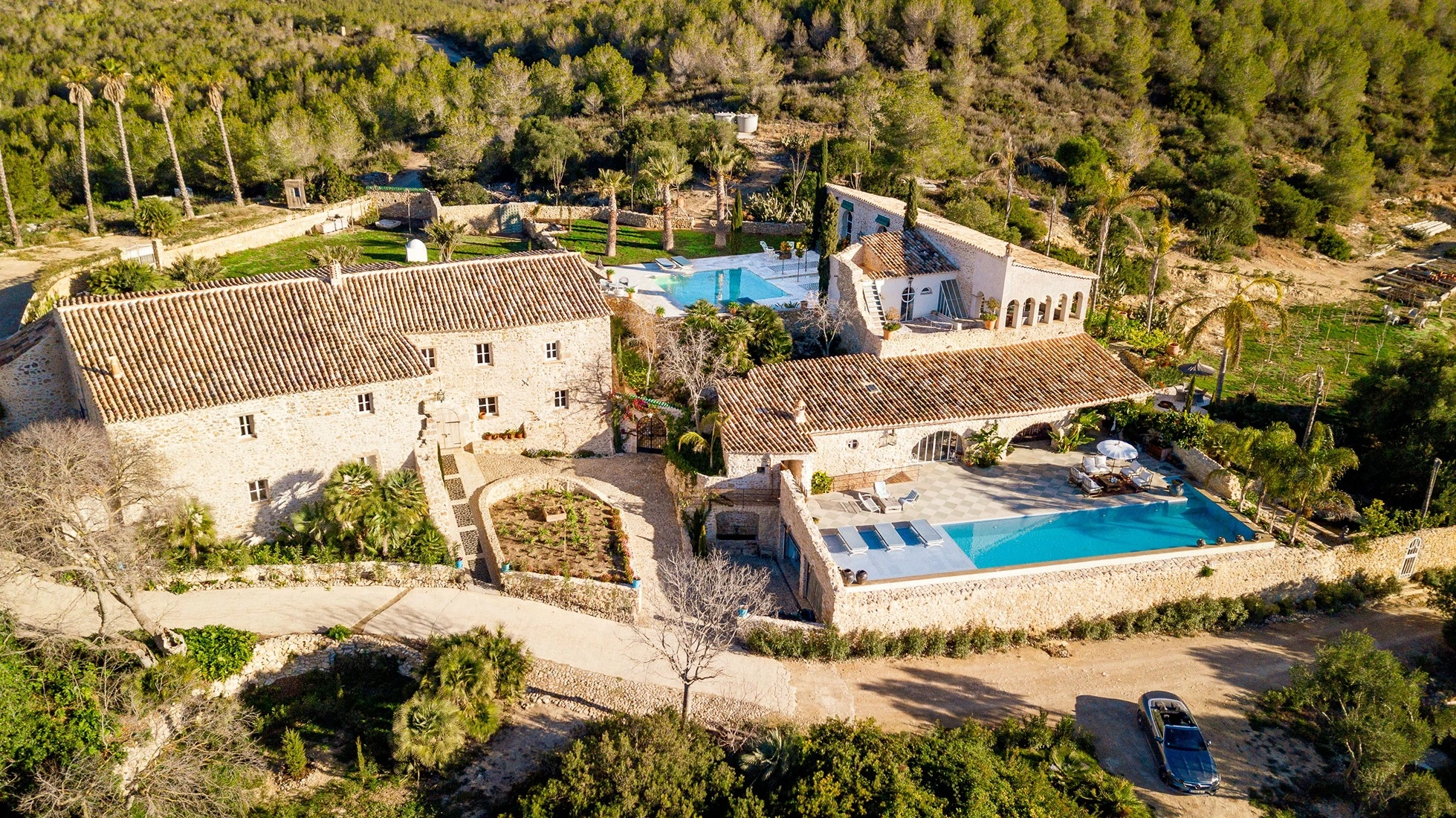 Comprometida con la sostenibilidad, la finca funciona íntegramente con energía renovable procedente de paneles solares, complementada con abundante agua de su propio pozo.